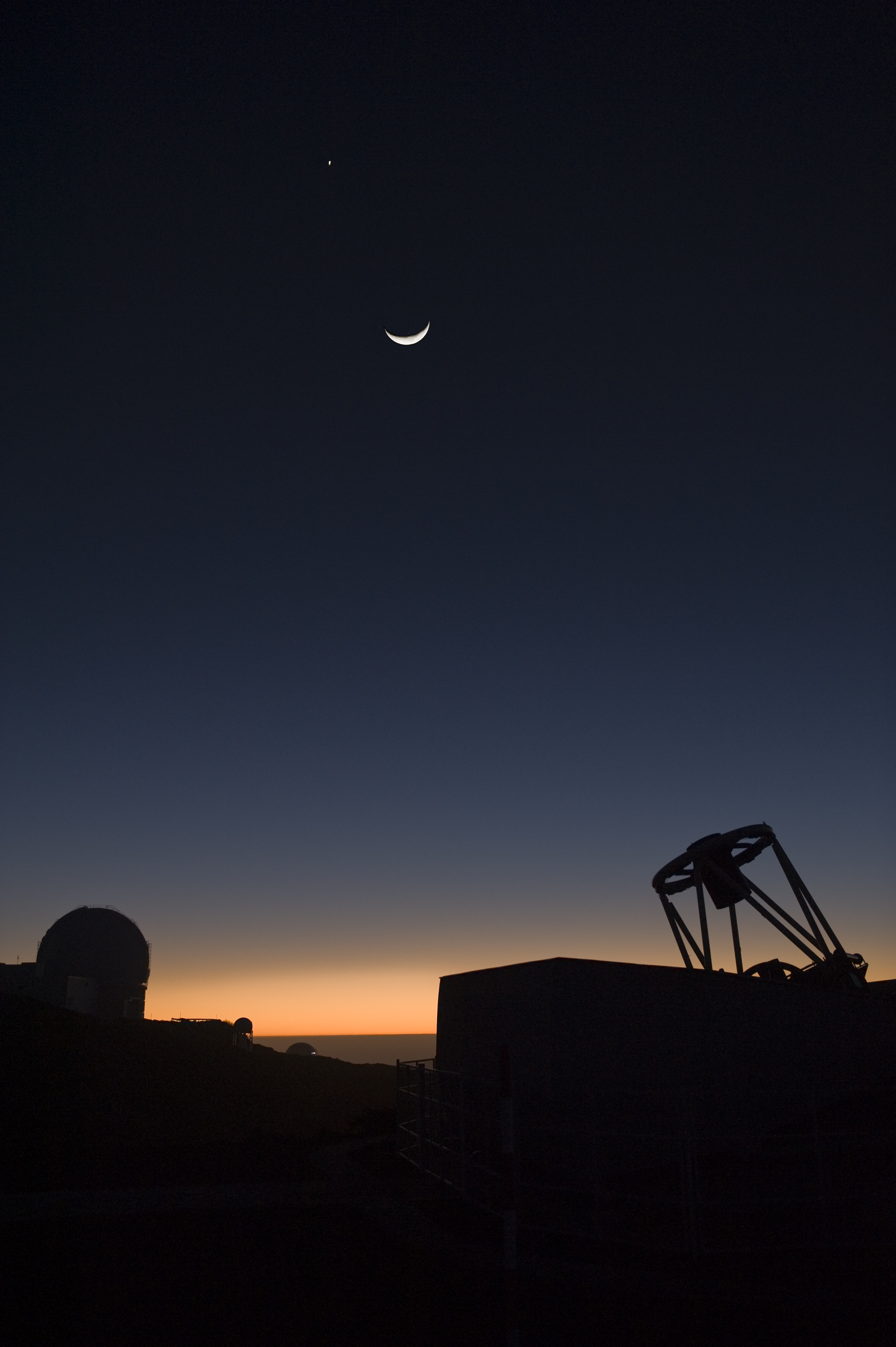 DESCRIPTIONThe Liverpool and the William Herschel telescopes at sunset.