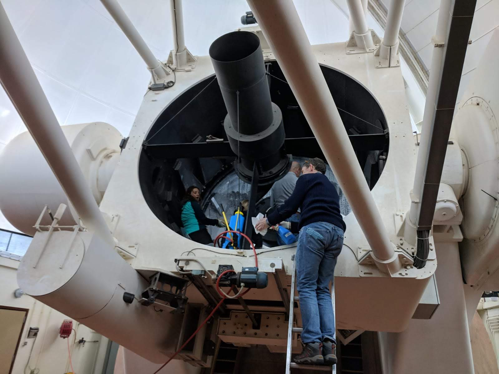 DESCRIPTIONCleaning of INT primary mirror in situ. See more photos at https://photos.app.goo.gl/2nmA5tXz5cvD8x2x6.
