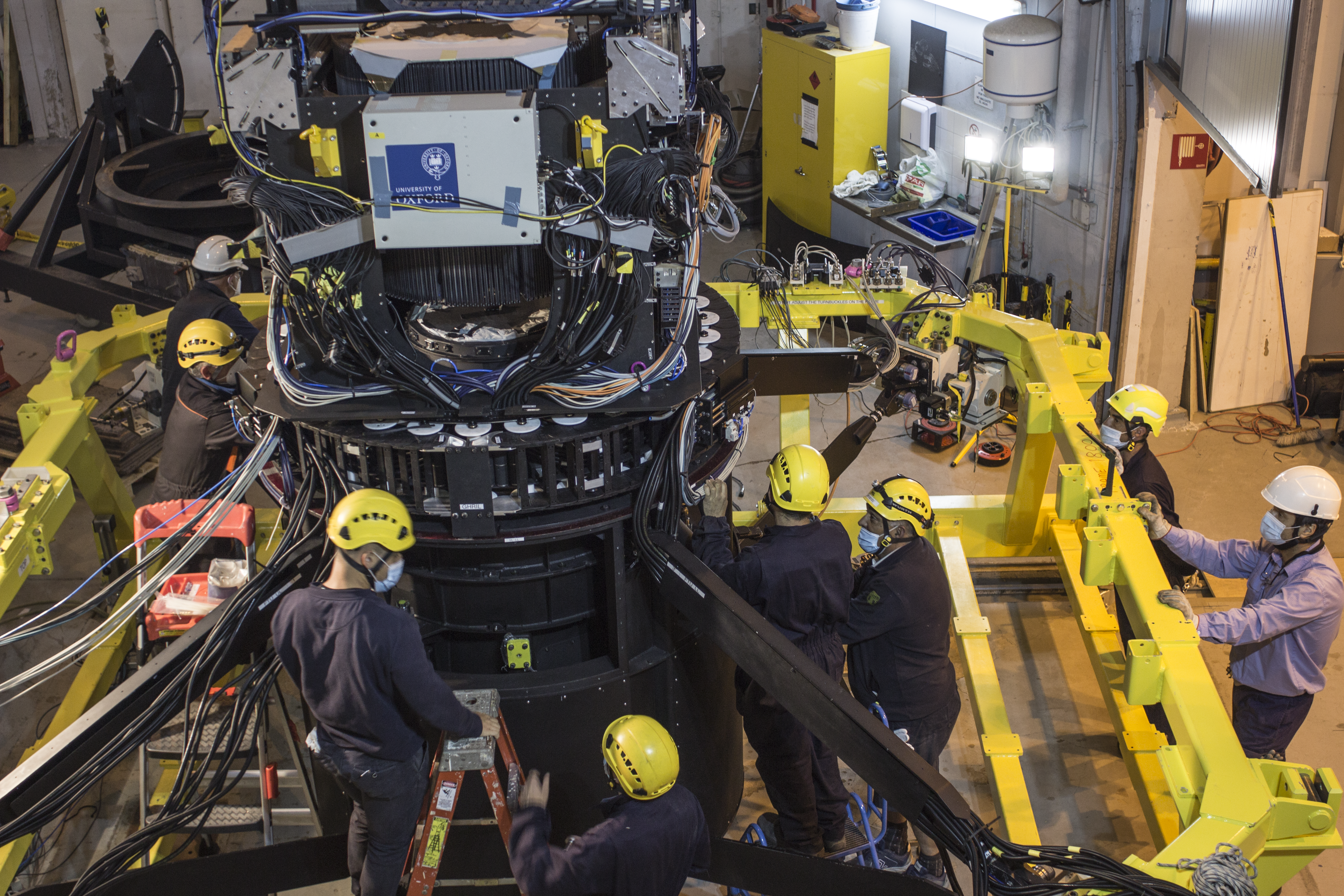 DESCRIPTIONWEAVE positioner, rotator and optics assembly for first time, in preparation for installation on the telescope.