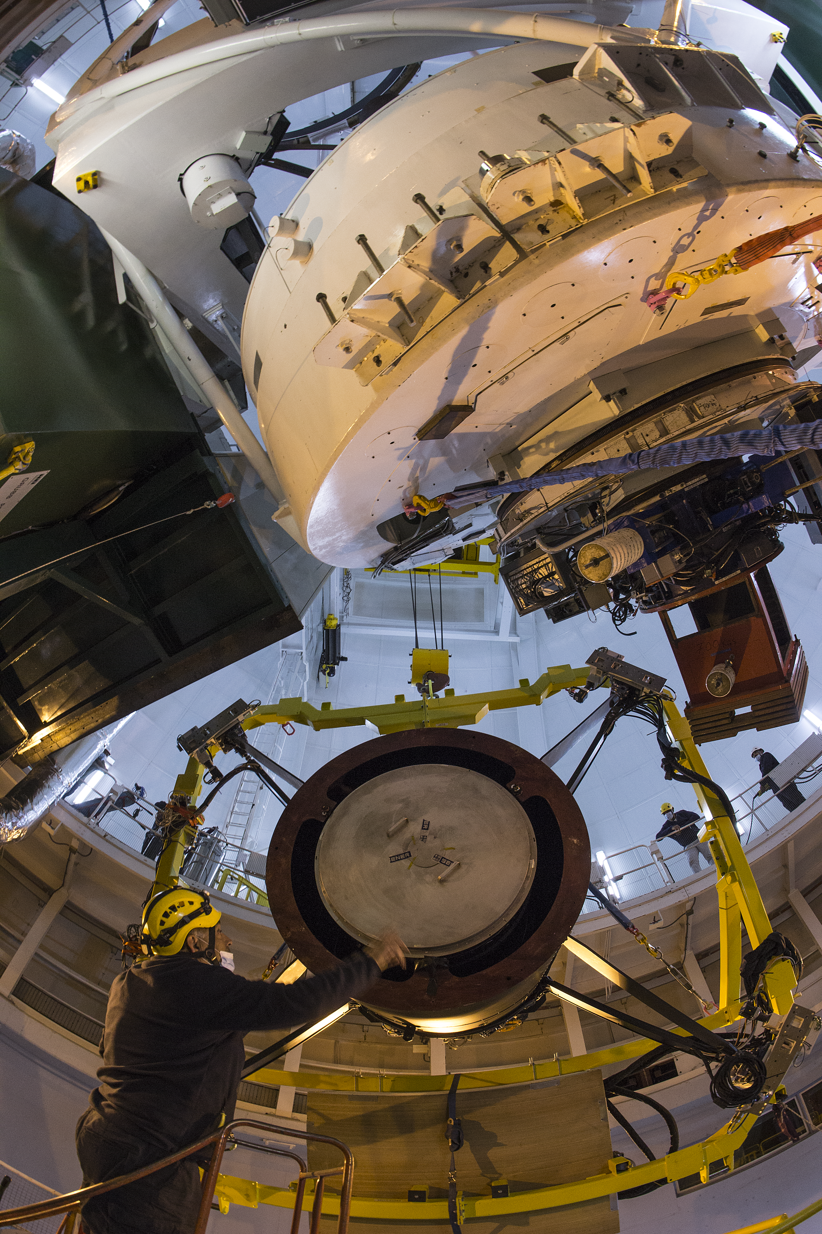 DESCRIPTIONLifting the WEAVE positioner, rotator, prime-focus optics and vanes for the first time for installation on the WHT.