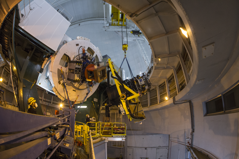 DESCRIPTIONLifting the WEAVE positioner, rotator, prime-focus optics and vanes for the first time for installation on the WHT.