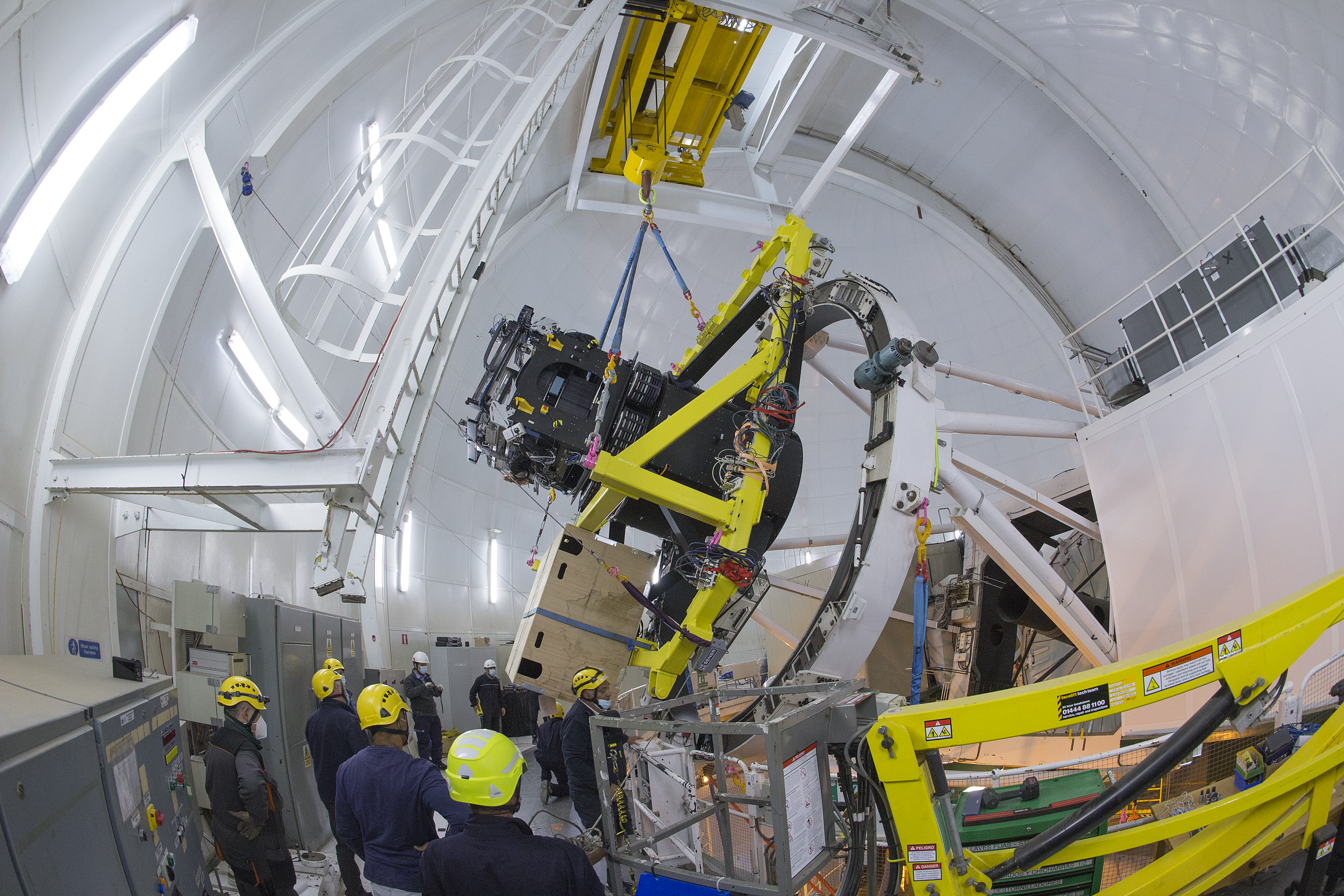 DESCRIPTIONLifting the WEAVE positioner, rotator, prime-focus optics and vanes for the first time for installation on the WHT.