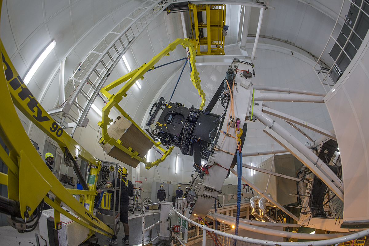 DESCRIPTIONLifting the WEAVE positioner, rotator, prime-focus optics and vanes for the first time for installation on the WHT.