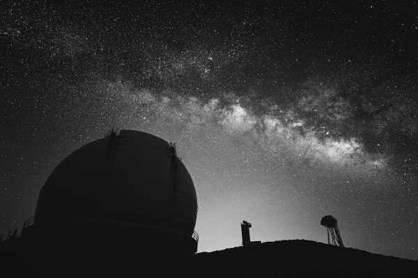 DESCRIPTIONThe William Herschel Telescope and the center of the Milky Way. Black and white version.
