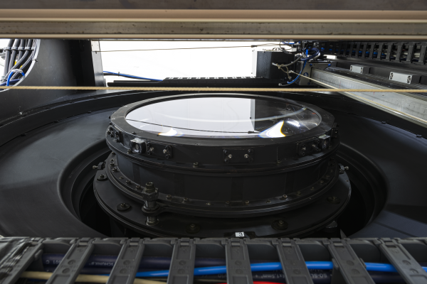 DESCRIPTIONView of the lens number 6 of the new prime-focus corrector as it is mounted on the telescope.