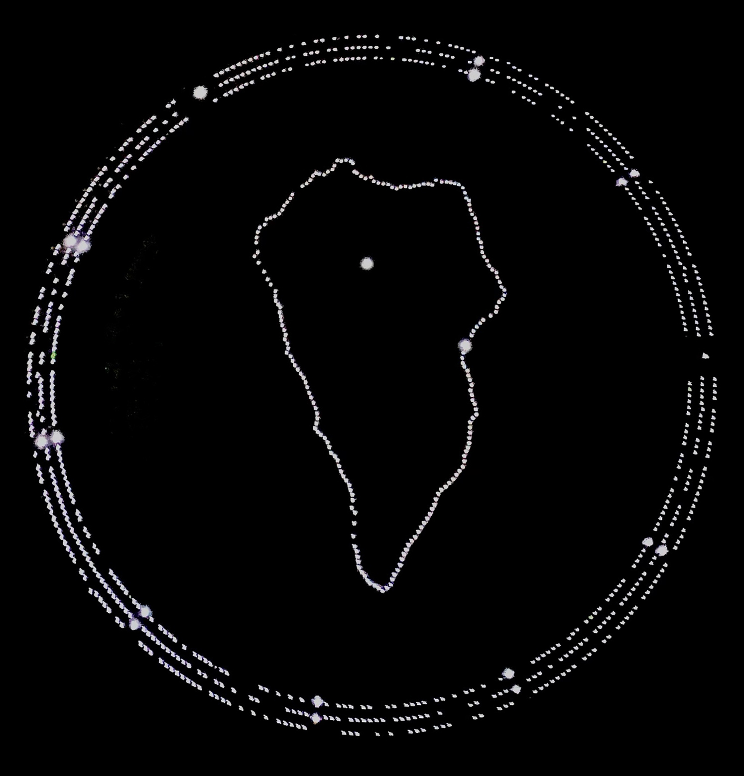 DESCRIPTIONLa Palma configuration plotted on plate B and the same configuration being back illuminated. It shows individual frames or in an animatted composition.