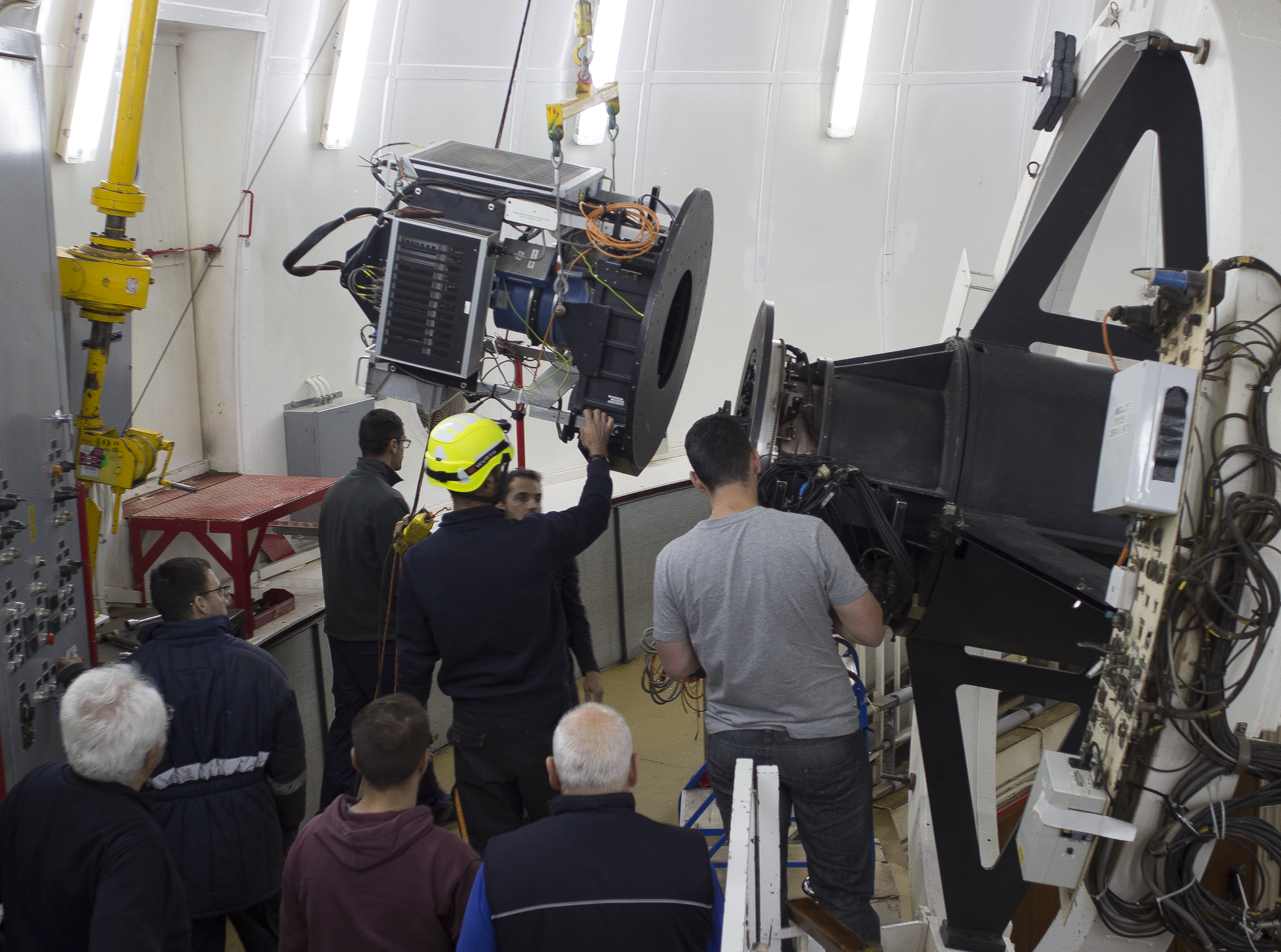 DESCRIPTIONLast removal of the WFC fromthe INT prime focus.